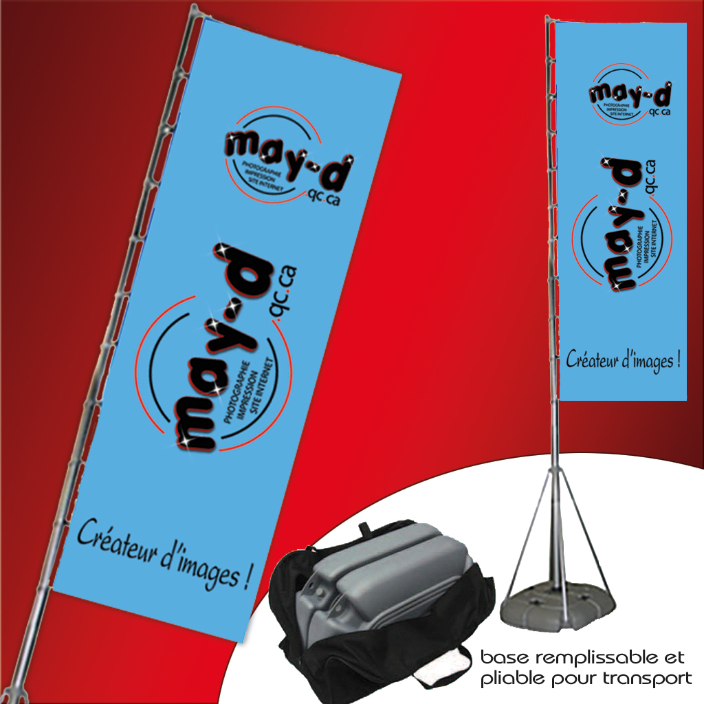 Impression inversé au verso, impression couleur sur tissus (couleur selon votre document), mât en aluminium,  bases incluses et 2 sacs de transport