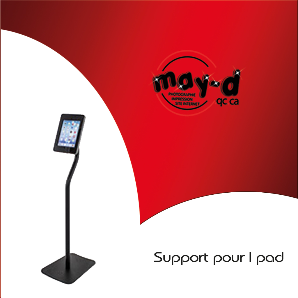 Le support pour IPad est de très haute qualité et est muni d’une base d’acier à trois positions. Un boitier vérouillable permet d’y inséré une tablette. De plus la possibilité d’inséré le fil dans le poteau du support offre une protection contre le vol et les accidents involontaires. Son poids est de 8 kg. Livré dans une boîte de carton.